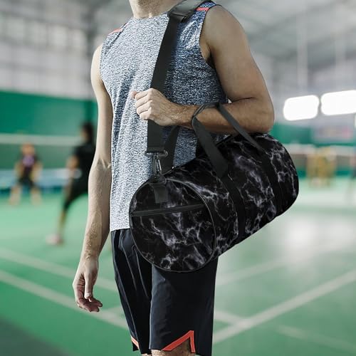 Black Marble Texture Travel Gym Bag for Women Men Cylindrical Duffle Bag Sport Workout Bag with Shoulder Strap 5