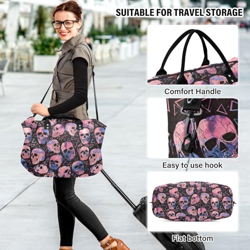 Cool Sugar Skull Black Large Travel Duffle Bag Weekender Overnight Bags Gym Yoga Bag for Women Men with Toiletry Bag 7