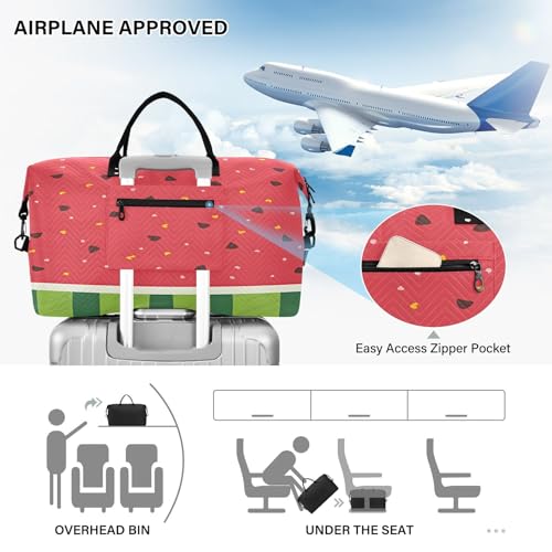 Watermelon Slice Red Large Travel Duffle Bag Weekender Overnight Bags Gym Yoga Bag for Women Men with Toiletry Bag 5