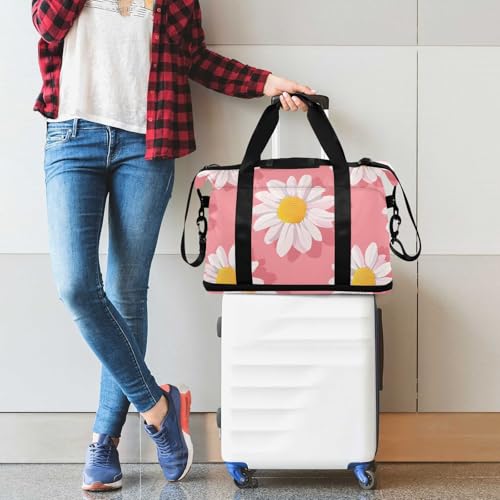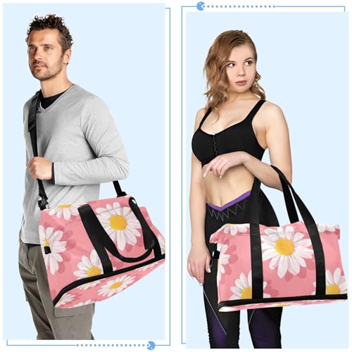 ALAZA Sports Duffel Bags with Toiletry Bag Set,Pink Daisy Travel Duffel Bags Multi Pockets Weekend Bag 1