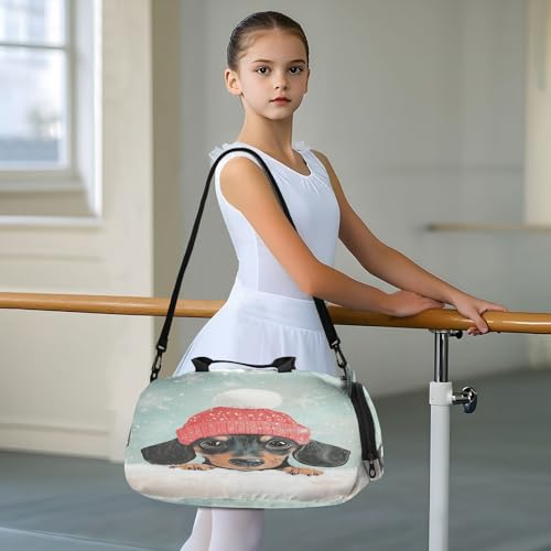 Snowflake Black Dog Kids Travel Duffel Bag for Boys Girls Overnight Weekend Tote Bag with Shoes Compartment for Trip Beach Swim 5