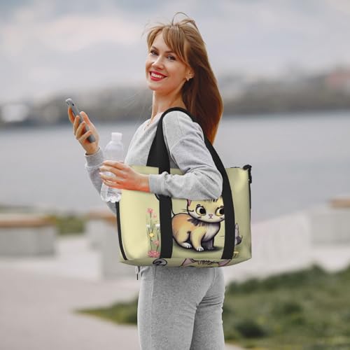 HOT ! Large Duffel Bag for Men Women, Cute Carry On Tote for Travel, Gym, Weekend Use, Printed Cat and Butterfly, 19.7" x 10.2" x 13.3"