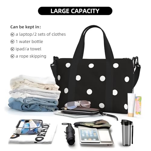 • Unique Design: Each bag features a vibrant, eye-catching Black And White Polka Dot print that stands out in any crowd. A stylish upgrade from your typical gym bag or travel suitcase.
