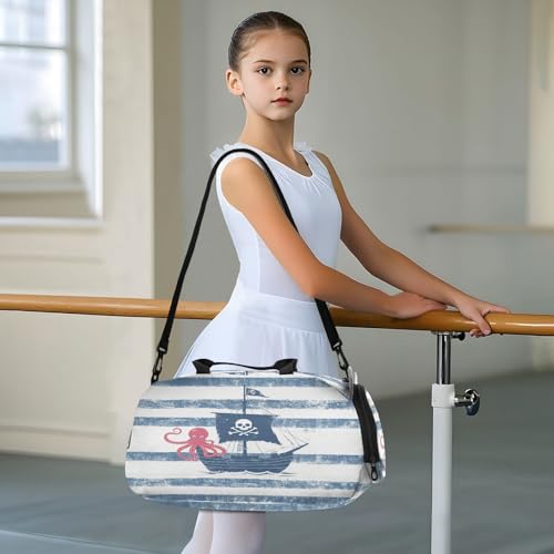 Pirate Frigate Octopus Kids Travel Duffel Bag for Boys Girls Overnight Weekend Tote Bag with Shoes Compartment for Dance Gym Sports 5