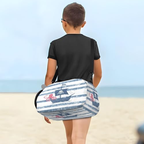 Pirate Frigate Octopus Kids Travel Duffel Bag for Boys Girls Overnight Weekend Tote Bag with Shoes Compartment for Dance Gym Sports 6