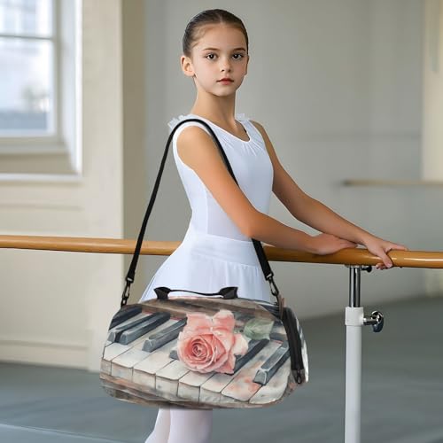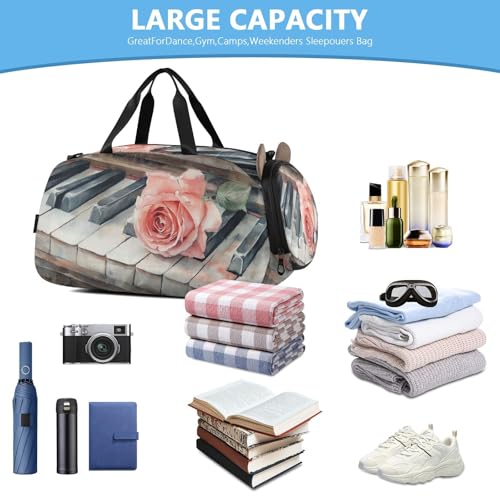 HOT ! Piano Rose Beige Kids Travel Duffel Bag for Boys Girls Overnight Weekend Tote Bag with Shoes Compartment for Trip Beach Gym