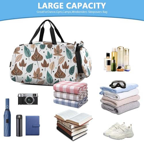 Flower Daisy Yellow Leaves Brown Fall Kids Travel Duffel Bag for Boys Girls Overnight Weekend Tote Bag with Shoes Compartment for Gym Sports Dance 6