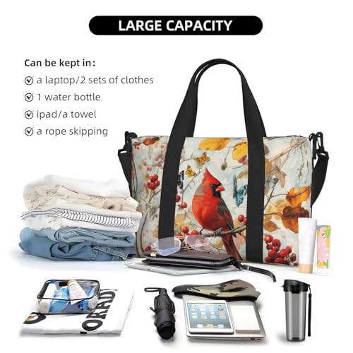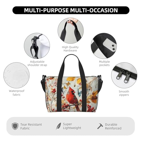 red bird print Travel Duffel Bag, Sports Tote Gym Bag, Swim Pool Bag Large Shoulder Tote Bag for Beach Weekender 7