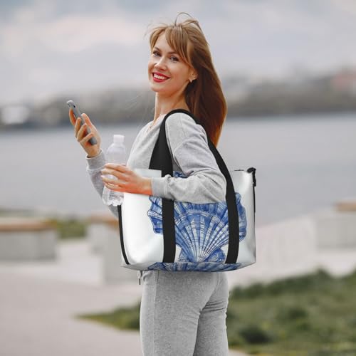 blue seashell print Travel Duffel Bag, Sports Tote Gym Bag, Swim Pool Bag Large Shoulder Tote Bag for Beach Weekender 7