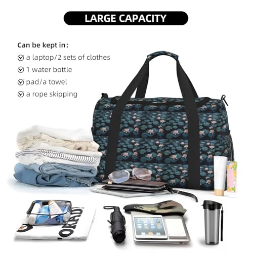 • Measuring an impressive 50x33x26 cm (19.7x13x10.2 inches), this Lily Pads Flower Print travel duffle bag offers ample space to accommodate all your essentials from clothing and electronics to personal items. for weekend getaways, business trips, or daily use.