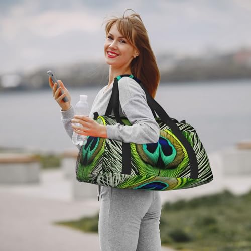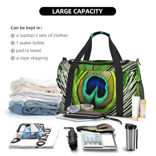 • Measuring an impressive 50x33x26 cm (19.7x13x10.2 inches), this Green Peacock Feather Print travel duffle bag offers ample space to accommodate all your essentials from clothing and electronics to personal items. for weekend getaways, business trips, or daily use.