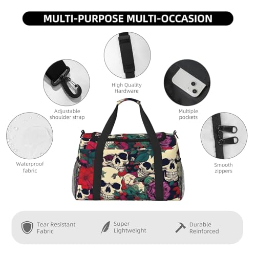 • Measuring an impressive 50x33x26 cm (19.7x13x10.2 inches), this Floral Skulls Print travel duffle bag offers ample space to accommodate all your essentials from clothing and electronics to personal items. for weekend getaways, business trips, or daily use.