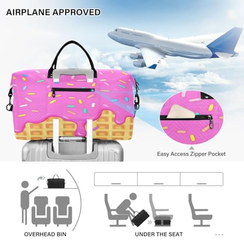 Funny Waffle Ice Cream Travel Duffle Bag Gym Bag Weekender Bags with Toiletry Bag Travel Trip Tote Bag 7