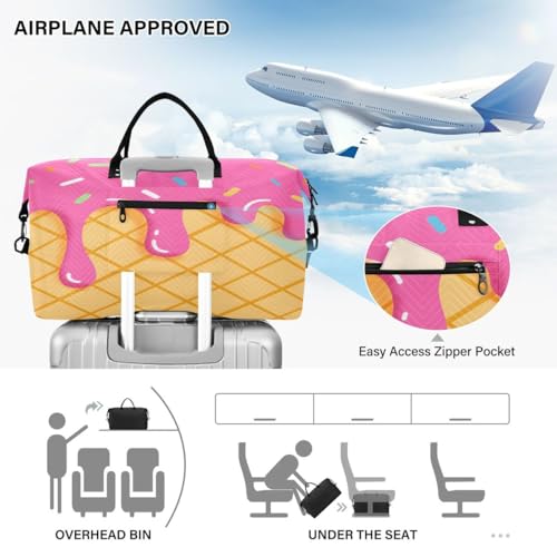 3d Hipster Stylish Ice Cream Travel Duffle Bag Gym Bag Weekender Bags with Toiletry Bag Travel Trip Tote Bag 3