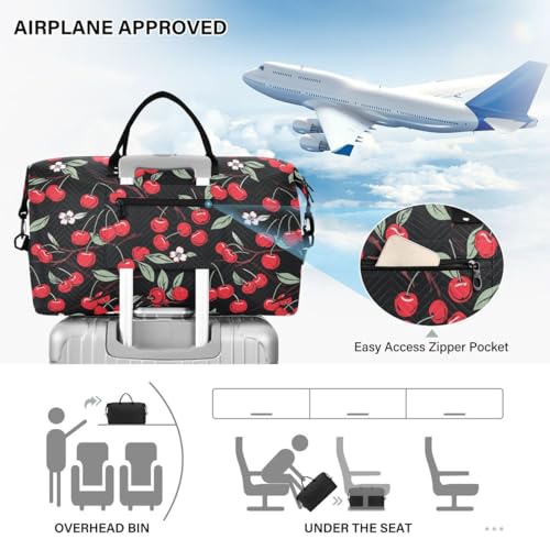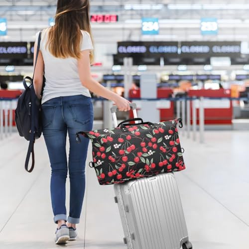 Flower Cherry Green Leaves Black Travel Duffle Bag Gym Bag Weekender Bags with Toiletry Bag Travel Trip Tote Bag 7
