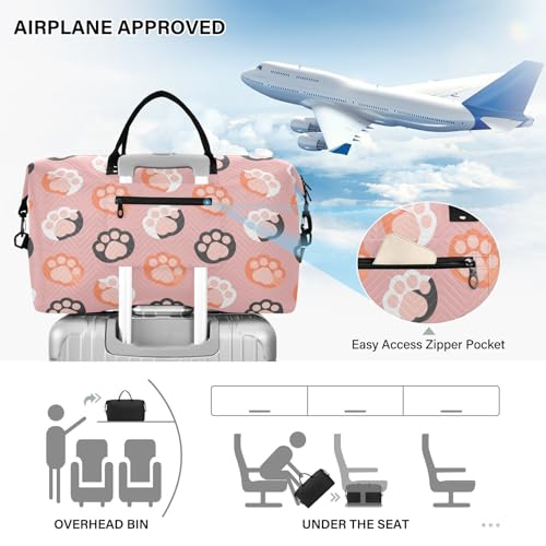 Cat Paws Cackground Duffle Bags for Women Men Waterproof Weekender Overnight Bags Hospital Bag Large Tote Bag with Toiletry Bag for Yoga Gym Travel Sport Hospital 6