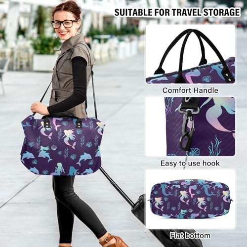 Gradient Mermaid Seashell Large Travel Duffle Bag Weekender Overnight Bags Gym Yoga Bag for Women Men with Toiletry Bag 6