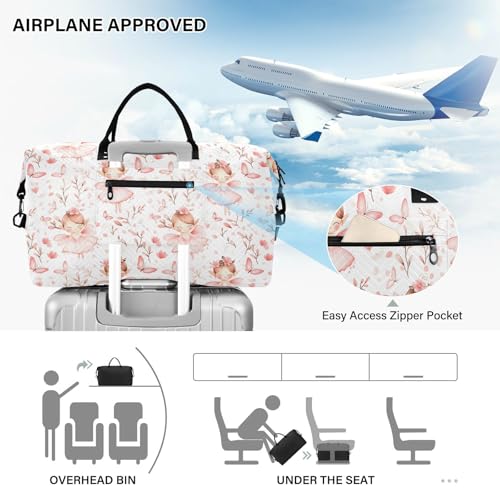 Travel Gym Bag, Fairy Butterfly Weekender Overnight Duffle for Women with Toiletry Bag Travel Swim 4