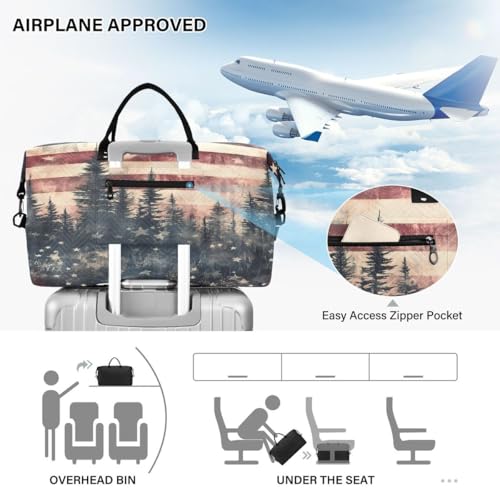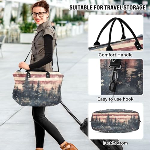 American Flag Star Tree Travel Duffle Bag Gym Bag Weekender Bags with Toiletry Bag Travel Trip Tote Bag 7