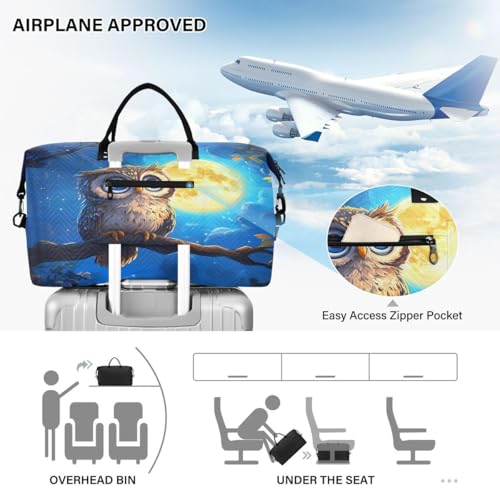 Owl Full Moon Tree Travel Duffle Bag Gym Bag Weekender Bags with Toiletry Bag Travel Trip Tote Bag 6