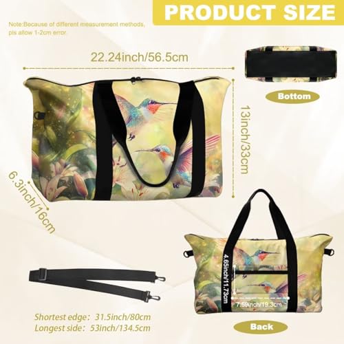 BIGCARJOB Hummingbird Print Overnight Bags for Women Travel Packable Duffel Bag Carry On Bag Large Overnight Duffle Bags for Traveling Camping Hiking 1