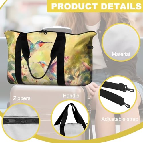 BIGCARJOB Hummingbird Print Overnight Bags for Women Travel Packable Duffel Bag Carry On Bag Large Overnight Duffle Bags for Traveling Camping Hiking 5