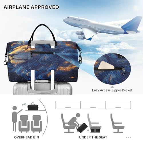 HOT ! Blue Lion Starry Black Travel Duffle Bag Gym Bag Weekender Bags with Toiletry Bag Travel Trip Tote Bag
