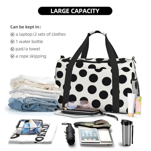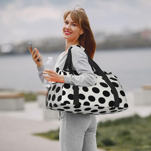 HOT ! Black And White Dot Print Travel Duffle Bag - Foldable Personal Item Travel Bag for Women & Men,Carry-On Convertible Crossbody Tote Bags with Adjustable Shoulder Strap & Pockets 13x10.2x19.7 in