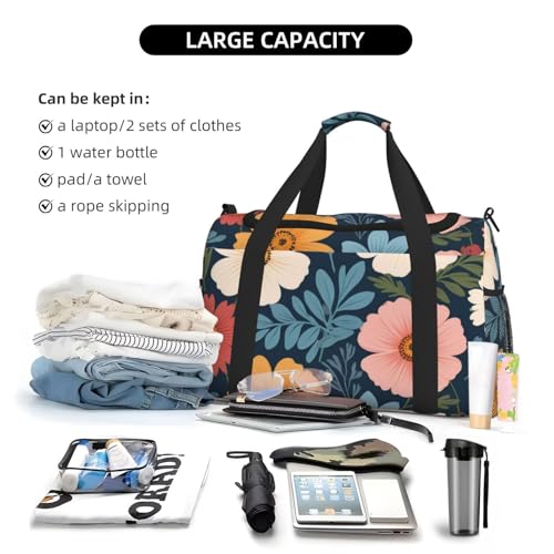 HOT ! Floral Flowers Print Travel Duffle Bag - Foldable Personal Item Travel Bag for Women & Men,Carry-On Convertible Crossbody Tote Bags with Adjustable Shoulder Strap & Pockets 13x10.2x19.7 in