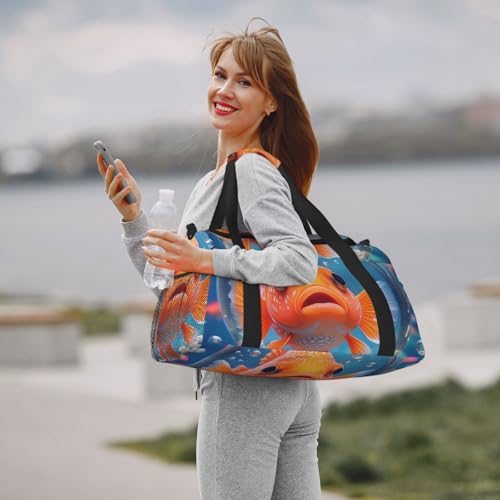 HOT ! Cute fish Print Travel Duffle Bag - Foldable Personal Item Travel Bag for Women & Men,Carry-On Convertible Crossbody Tote Bags with Adjustable Shoulder Strap & Pockets 13x10.2x19.7 in