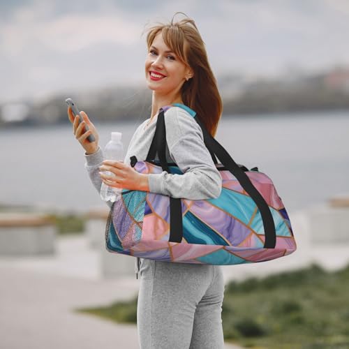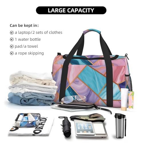 HOT ! Colorful Marble Pastel Blue Purple Print Travel Duffle Bag - Foldable Personal Item Travel Bag for Women & Men,13x10.2x19.7