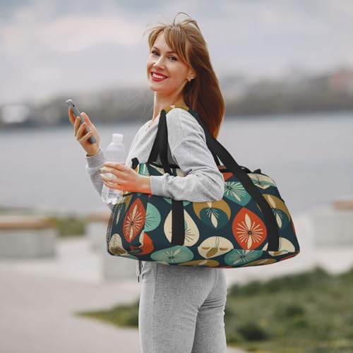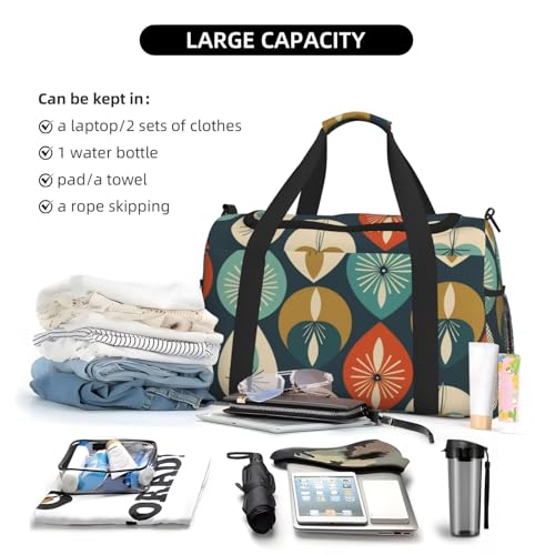 HOT ! Mid Century Modern Retro with Drop Shapes Print Travel Duffle Bag - Foldable Personal Item Travel Bag for Women & Men,13x10.2x19.7