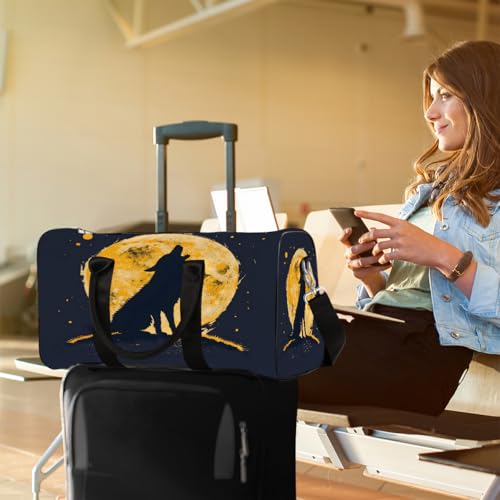 HOT ! Night Full Moon Wolf Weekender Bag Travel Duffle Bag for Women Men Overnight Shoulder Bags Waterproof Foldable Sports Gym Tote Bags Carry On Luggage for Travel Sports Dance Yoga Hospital