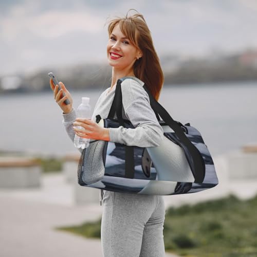 Penguin Antarctica Ice Print Travel Duffle Bag - Foldable Personal Item Travel Bag for Women & Men,Carry-On Convertible Crossbody Tote Bags with Adjustable Shoulder Strap & Pockets 13x10.2x19.7 in 3