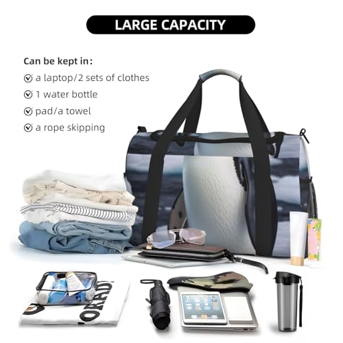 More information about Penguin Antarctica Ice Print Travel Duffle Bag - Foldable Personal Item Travel Bag for Women & Men,Carry-On Convertible Crossbody Tote Bags with Adjustable Shoulder Strap & Pockets 13x10.2x19.7 in
