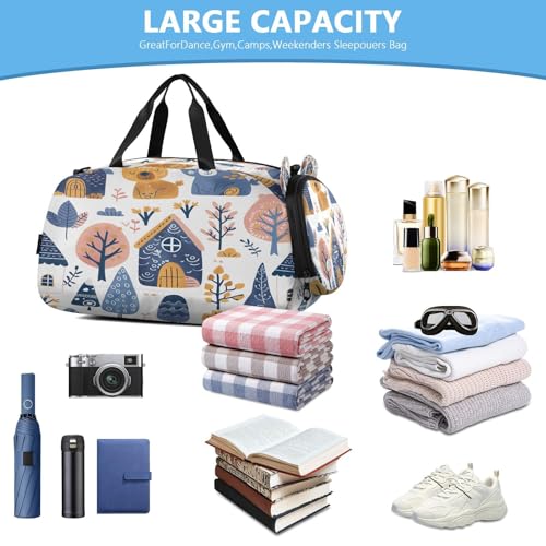 YETTASBIN Sport Travel Duffel Bag for Girls Boys, Woodland Animal Large Waterproof Weekender Overnight Bag, Detachable Shoulder Strap Gym Bag with Shoe Compartment & Wet Pocket 1