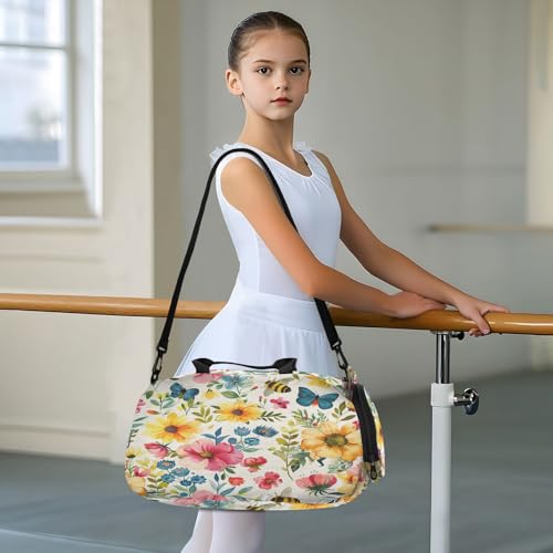 YETTASBIN Sport Travel Duffel Bag for Girls Boys, Colorful Flower Large Waterproof Weekender Overnight Bag, Detachable Shoulder Strap Gym Bag with Shoe Compartment & Wet Pocket 4