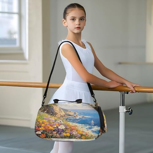 YETTASBIN Sport Travel Duffel Bag for Girls Boys, Art Painting Flower Large Waterproof Weekender Overnight Bag, Detachable Shoulder Strap Gym Bag with Shoe Compartment & Wet Pocket 5