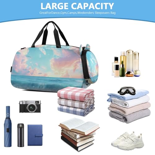 HOT ! YETTASBIN Sport Travel Duffel Bag for Girls Boys, Beach Large Waterproof Weekender Overnight Bag, Detachable Shoulder Strap Gym Bag with Shoe Compartment & Wet Pocket