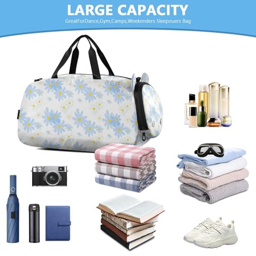 Flower Blue White Kids Travel Duffel Bag for Boys Girls Overnight Weekend Tote Bag with Shoes Compartment for Trip Beach Gym 5