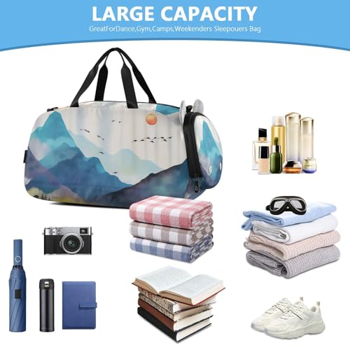 Misty Forest Mountain Kids Overnight Duffle Bag,Gymnastics Sports Dance Bag with Shoe Compartment & Wet Pocket, Travel Weekender Tote for Boys & Girls 5
