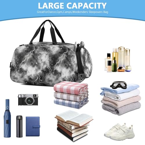 Lightning Star Cloud Gray Kids Travel Duffel Bag for Boys Girls Overnight Weekend Tote Bag with Shoes Compartment for Gym Sports Dance 6