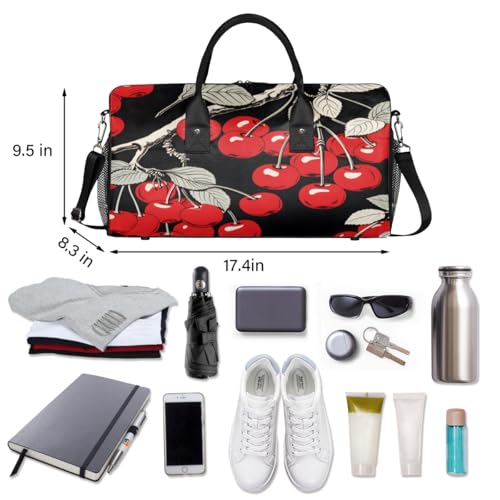 Vintage Red Cherry Travel Duffle Bag for Women Men Foldable Waterproof Weekender Bag Carry on Tote for Overnight Sports Gym Cherry 5