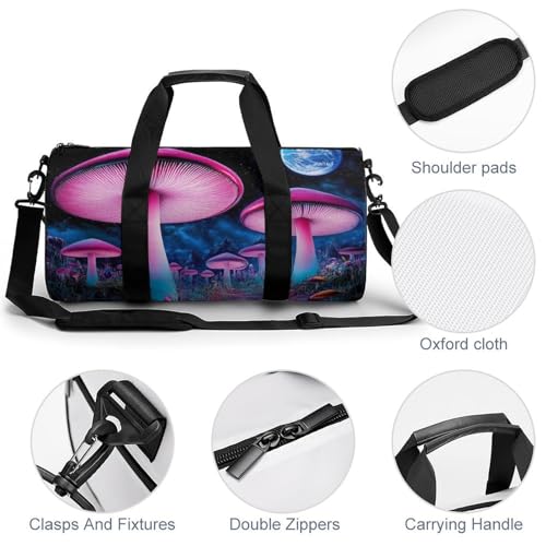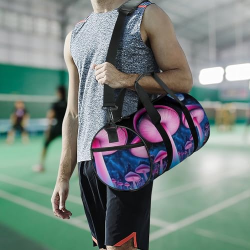 HOT ! Gym Bag for Men Women, Lightweight Overnight Duffel Bags Trippy Mushroom Magical World Glowing Art Waterproof Travel Sports Bag