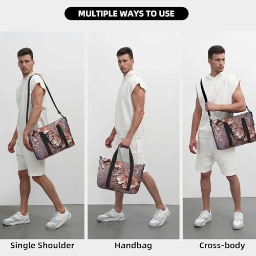 • Portable Weekender Bag: Rose gold elegant decorative floral weekender overnight bag with a soft leather handle and a detachable shoulder strap, this duffel bag offers multiple carrying options for your convenience. Whether you prefer to carry it by hand, over your shoulder, or across your body, the ergonomic design ensures maximum comfort