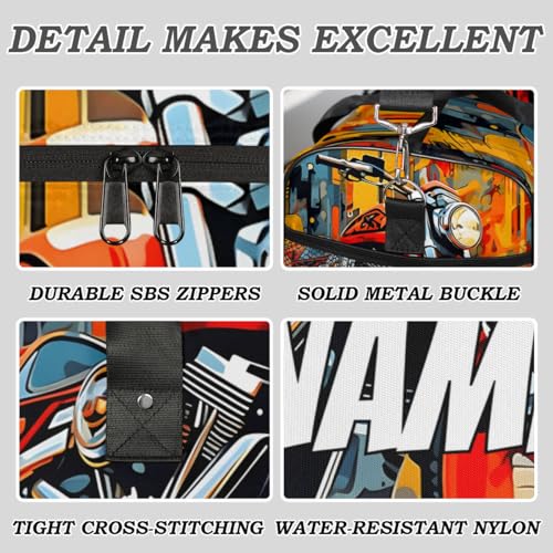 Personalized Colorful Motorcycle Travel Duffel Bag with Name, Custom Gym Sport Bag Modern Art Carry On Weekend Overnight Duffel Bag for Men Women 4