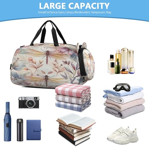 Dragonflies Kids Overnight Sports Duffel Bags with Shoe Compartment & Wet Pocket Travel Sport Gym Bag for Girls Boys 5