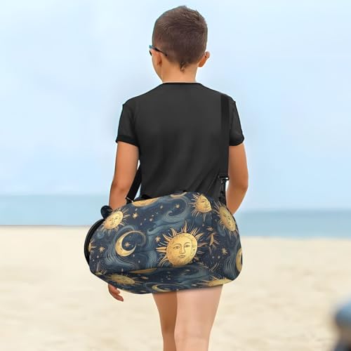 Sun and Moon Duffle Bag for Girl, Sports Duffle Gym Bags with Shoe Compartment, Personalized Overnight Bag Travel Weekender for Kids 5