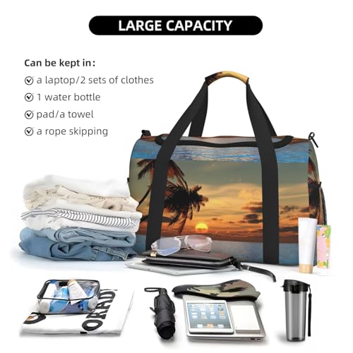 • Measuring 50x33x26 cm (19.7x13x10.2 inches), thisSunset Palm Tree Ocean Print large travel tote bag offers ample space to accommodate clothes, electronics, and daily essentials, making it for weekend trips, gym workouts, or everyday use.