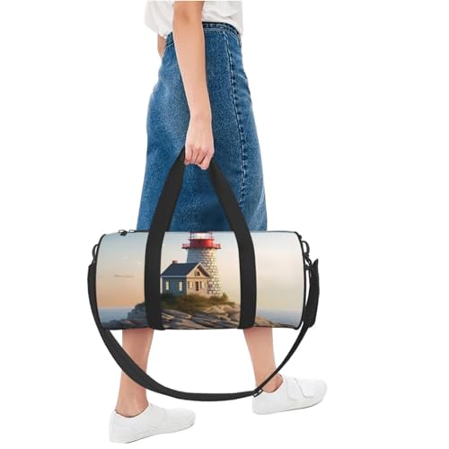 3D Seaside Lighthouse Duffle Bag for Women Men Personal Item Travel Bags Canvas Weekender Overnight Bag Lightweight Sports Tote Gym Bag Carry On Luggage Bag 3